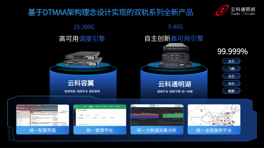 同时,为了更好的适配双轨超高可用架构,710公海赌赌船官网推出了容翼系列和云科通明湖信创系列两大应用交付控制器产品。
